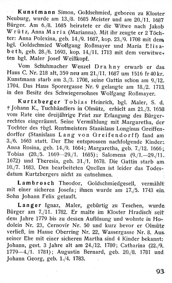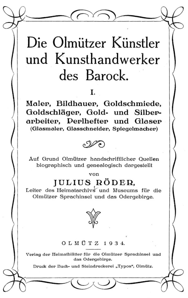 Die Olmützer Künstler und Kunsthandwerker des Barock von Julius Röder.