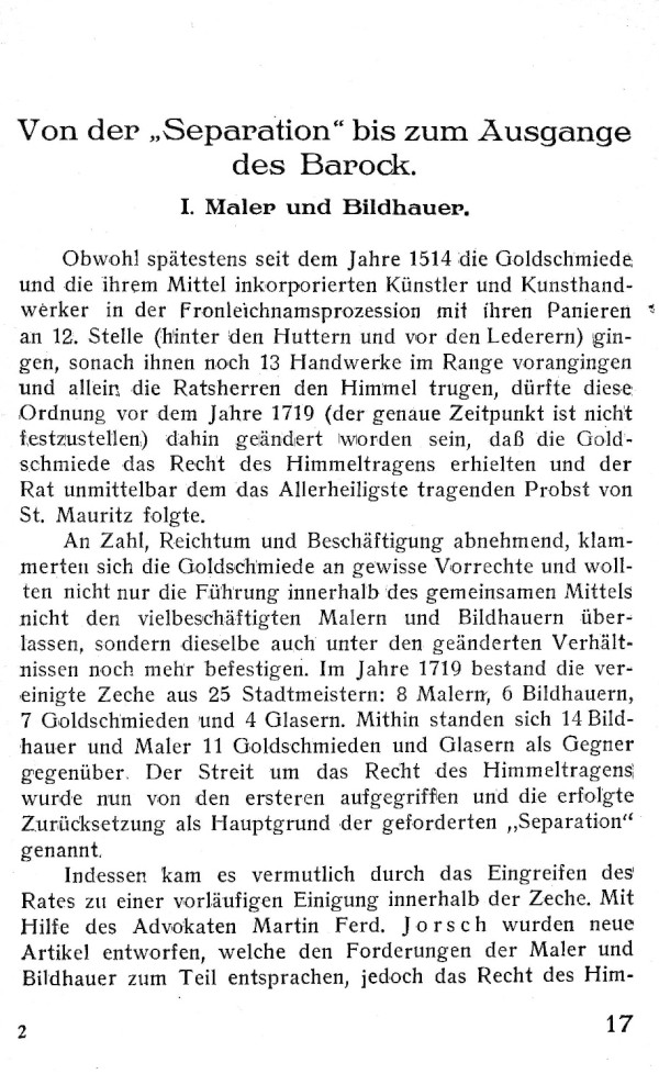 17 - Von der "Separation" bis zum Ausgange des Barock - I. Maler und Bildhauer - 1